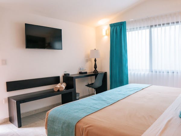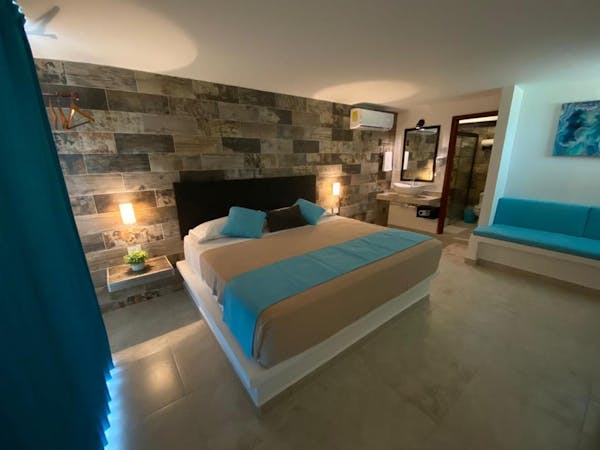 Habitación con cama King size y vista a la Laguna de Bacalar.